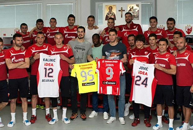 Košarkaši Crvene zvezde Nikola Kalinić i Stefan Jović posetili su fudbalere istog kluba kako bi im preneli recept za trijumf u večitom derbiju.