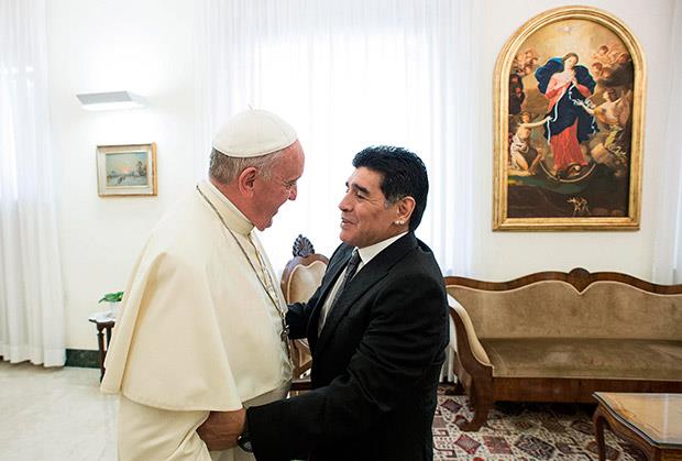 VATIKAN - Poglavar Rimokatoličke crkve, papa Franja danas je u Vatikanu s bivšim argentinskim fudbalerom Dijegom Maradonom razgovarao o novoj utakmici za mir u Rimu, saopštio je danas Vatikan.