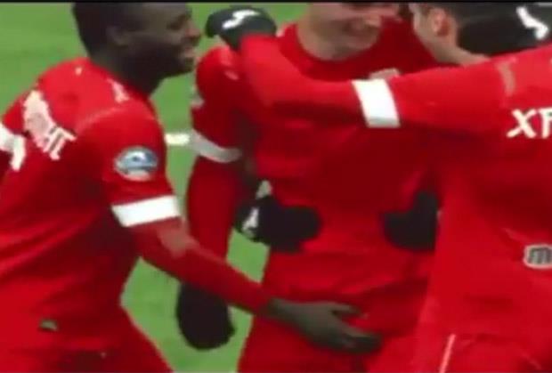 Prilikom proslavljanja pogotka viđena je čudna situacija, pošto je Ganac Emanuel Frimpong uhvatio saigrača za međunožje.