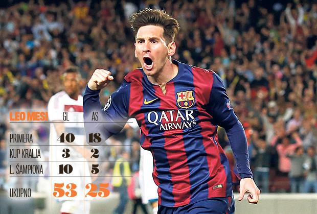 Najbolji strelac u istoriji Lige šampiona Leo Mesi postigao je ove sezone 14 golova više nego ceo tim još uvek aktuelnog prvaka Srbije! Argentinac je mreže rivala pogađao čak 53 puta, dok su svi fudbaleri Crvene zvezde dosad dali tek 39 pogodaka.
