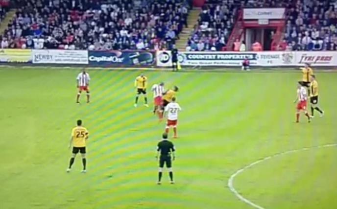 Na utakmici baraža za ulazak u englesku Ligu 1 (treći stepen takmičenja) između Stivenidža i Sautenda dvojica fudbalera su se žestoko sudarila glavama.