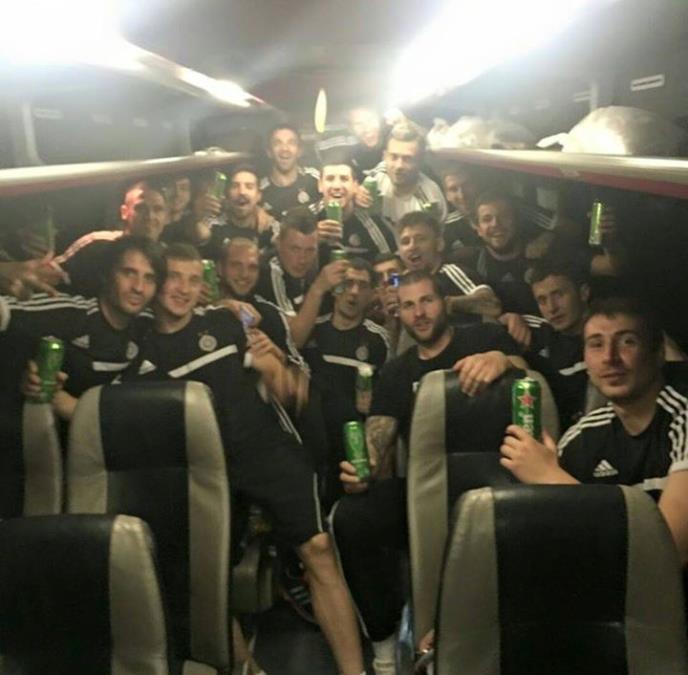 Na povratku iz Kruševca crno-beli su se opustili u autobusu i uz pivo zapevali pesmu "Slaviće se titula, Partizan je šampion, peva cela Srbija"