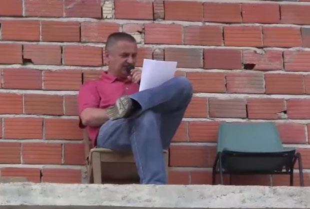 Spiker je sa terase nedovršene zgrade pored stadiona iz stolice najavio meč