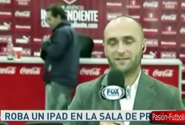 On je posle utakmice Independijentea ušao u prostoriju gde je održana konferencije za novinare. I dok su novinari uživo izveštavali za svoje medijske kuće on se približio stolu i ukrao tablet koji se našao na njemu. Tablet je stavio ispod jakne i mirno išetao iz prostorije.