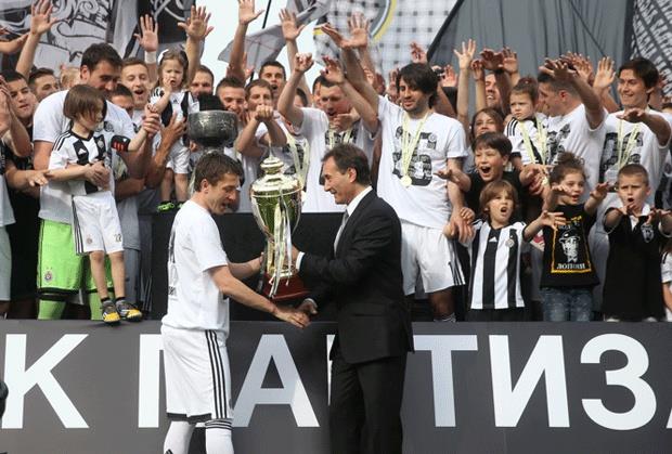 Kapiten Partizana Saša Ilić pretplatio se na dizanje trofeja. Sa crno-belima je desti put postao šampion, pa je danas, uoči meča sa Novim Pazarom, ponovo primio i podigao pehar namenjen najboljem u državi.