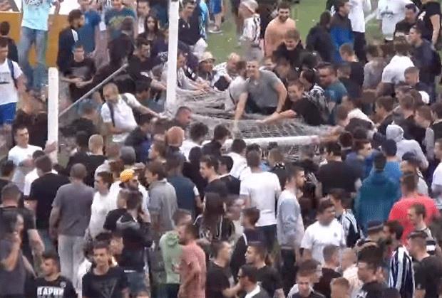 Gol ispod južne tribine je slomljen, a onda je usledilo kidanje mreže.