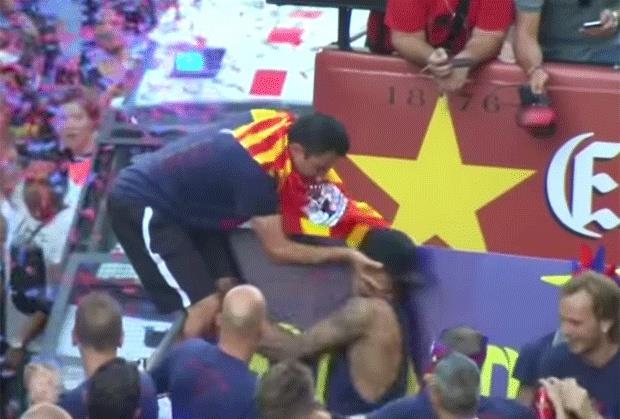 Tokom prolaska autobusa kroz grad Ćavi je bio ogrnut katalonskom zastavom. Nekoliko saigrača pokušalo je da mu je strgne sa vrata, zbog čega ih je on redom odgurivao, a najgore je prošao Brazilac kome je 35-godišnji vezista udario ćušku.