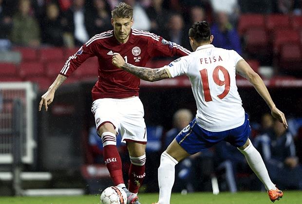 DANSKA: Šmajhel - Jakobsen, Kjaer, Ager, S. Poulsen - Kvist (od 77. Kristensen), Hejbjerg, Kron-Deli (od 61. Jakob Poulsen) - Jususf Poulsen (od 73. Vibe), Bentdner, Eriksen.