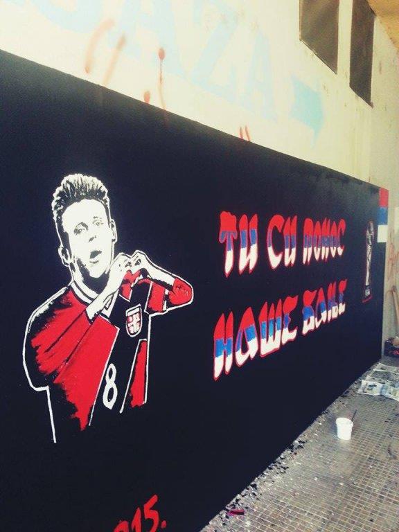 "Mural smo uradili Dušan Tadić i ja. Mural se nalazi u centru Banje Kovinjače u prolazu jedne zgrade koji vodi do lokala gde smo pratili naše mlade fudbalere. Mural je rađen juče od 10 časova pre podne do nekih 5-6 posle podne", kaže za portal Kurira Nemanja Stankić, jedan od autora murala.