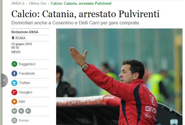 Sportski direktor Katanije Antonio Pulvirenti i još dvojica čelnika ovog kluba, uhapšeni su jutros, pošto tužilaštvo podiglo optužnicu da su učestvovali u nameštanju utakmica u Seriji B.