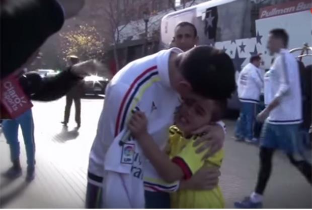 Navijači Kolumbije su nestrpljivo čekali da stigne autobus sa njihovim ljubimcima. Hames je izašao i među okupljenim navijačima ugledao jednog dečaka koji drži njegov dres iz Reala.