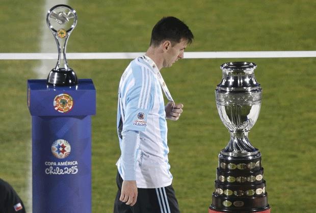 Mesi je bio član selekcije svoje zemlje u finalima Kopa Amerika dva puta i oba puta je izgubio. U Venecueli 2007. godine Brazil je bio ubedljiv 3:0, a sinoć je domaćin u Čileu slavio posle boljeg izvođenja penala. Doduše, Mesi je u Santjagu bio jedini precizan sa bele tačke od svih argentinskih izvođača, ali to nije bilo dovoljno da se izbegne neuspeh.