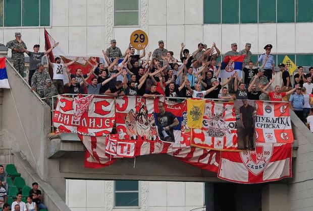 Oko 40 navijača Crvene zvezde, uz klupska i obeležja Srbije, pružalo podršku izabranicima Miodraga Božovića