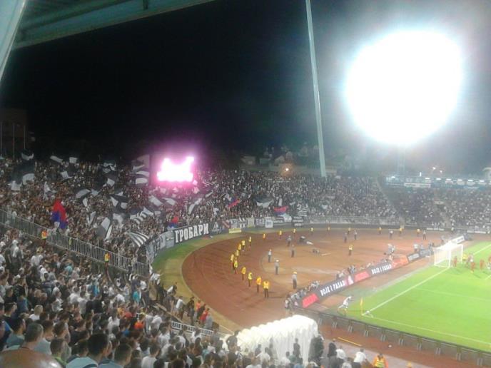 Crno-beli su se odazvali pozivu Grobara, izašli na atletsku stazu ispod južne tribine, a onda su navijači počeli da skandiraju: "Hoćemo pobedu, hoćemo pobedu"...