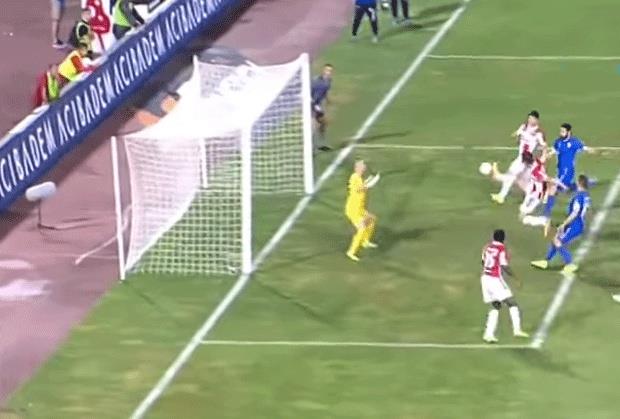 Mamadu Mbođ je glavom spustio loptu, koju je na putu ka Joviću zakačio Vukašin Jovanović. Pogledajte da li je Jović bio u nedozvoljenoj poziciji u trenutku kada mu je Jovanović asistirao.