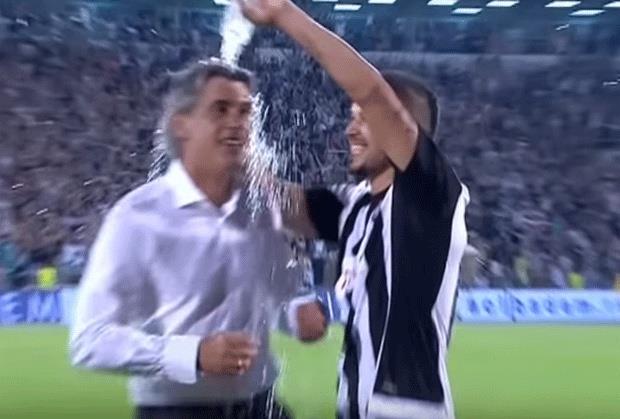 Jasno je da je Božinovu laknulo posle prolaza crno-belih u narednu rundu, jer da nisu uspeli da ostvare taj cilj, iskusni internacionalac bi bio tragičar, jer je promašio penal na početku drugog poluvremena. Ovako, Božinov je blistao od sreće. Uzeo je flašicu punu vode i polio Milinkovića.