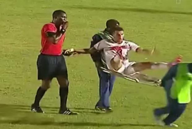 (VIDEO) ALO, GDE SI KRENUO: Sudija oborio povređenog fudbalera sa nosila!