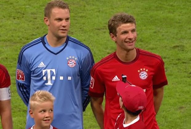 Tako je "žrtva" Milerove šale bio mališan, koji se našao ispred njega, tokom uobičajene ceremonije uoči početka utakmice. Dečak je, kako bi trenutke provedene uz fudbalere Bajerna ovekovečio za sva vremena, na kačket okačio malu kameru. A pogledajte šta mu je uradio Tomas Miler (na snimku na 1:36).
