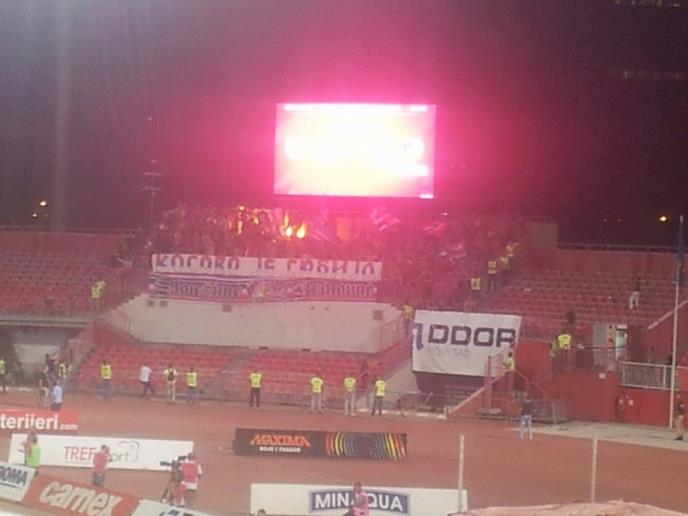 Navijači Viktorije su u finišu meča razvili transparent na kojem je pisalo: Kosovo je Srbija. Pristalice gostiju su potom pevale Kosovo je srce Srbije.