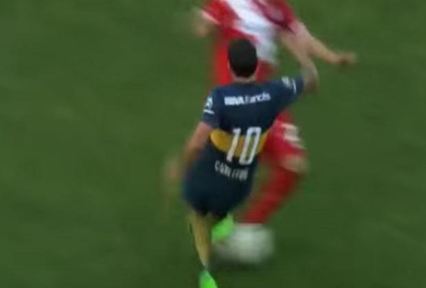 BUENOS AJRES - Fudbaler Boke juniors Karlos Tevez slomio je nogu igraču Argentinos juniorsa Ezekijelu Hamu tokom meča 25. kola argentinskog prvenstva.