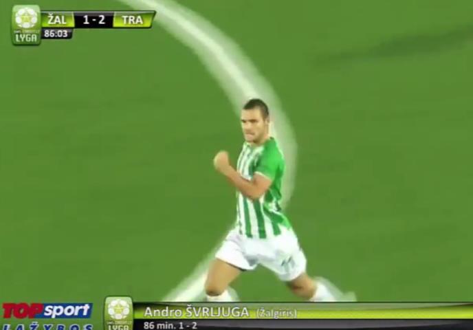 Nekadašnji fudbaler Rijeke Andro Švljuga postao je hit na internetu posle pogotka koji je postigao u meču litvanske lige između Žalgirisa i Trakaija.