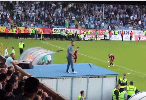 Edis Mulalić, pošto je isključen, popeo se na krov tunela koji vodi u svlačionice