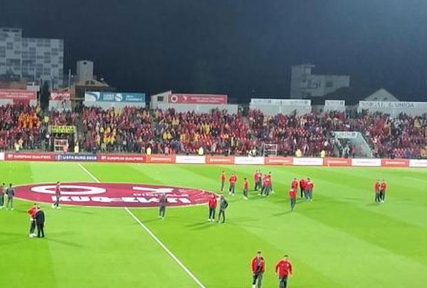 Domaći navijači su oko 90 minuta pre početka utakmice popunili tribine "Elbasan arene", a srpske fudbalere dočekali su zvižducima, uvredama i skandiranjem "UČK, UČK"