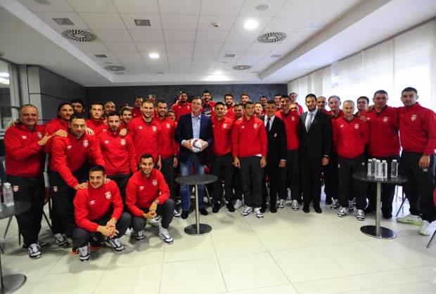 Premijer Srbije je od kapitena Branislava Ivanovića dobio dres na poklon, a od junaka pobede u Elbasanu Adema Ljajića loptu, dok je zamenik kapitena Aleksandar Kolarov poklonio dres ministru sporta Vanji Udovičiću.