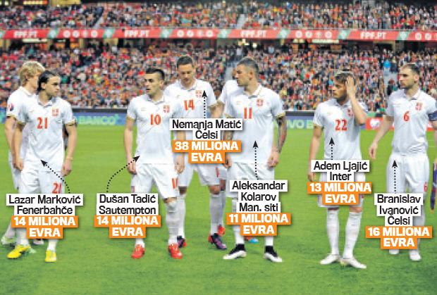 Srbija uz Holandiju ima ubedljivo najskuplji tim koji neće igrati na Evropskom prvenstvu 2016. godine. „Orlovi“ skupa vrede 172,119 miliona, što je više od čak 11 selekcija koje su kroz kvalifikacije izborile plasman u Francusku.