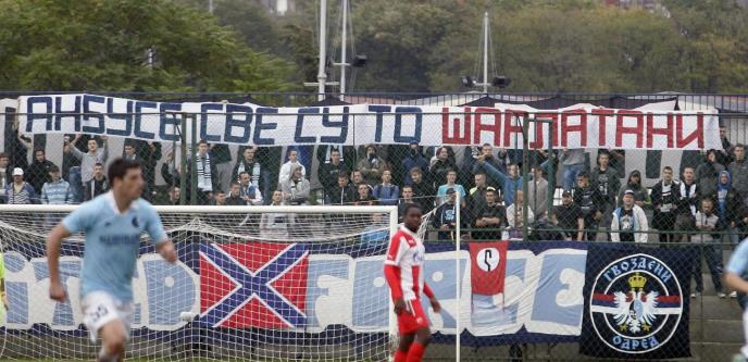 Tokom meča istaknut je transparent: