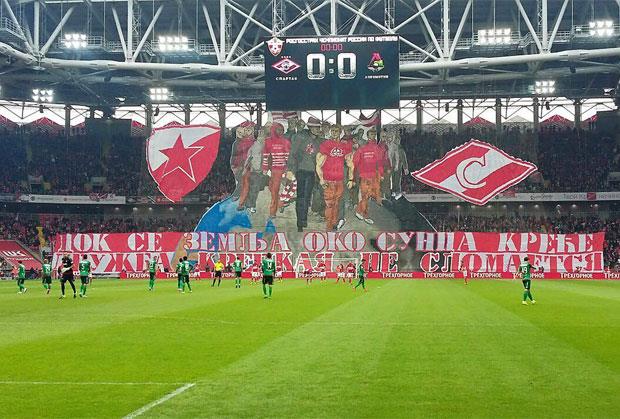 Pored transparenta koji je bio crveno-beli navijači moskovskog kluba istakli i grbove Crvene zvezde i Spartaka.