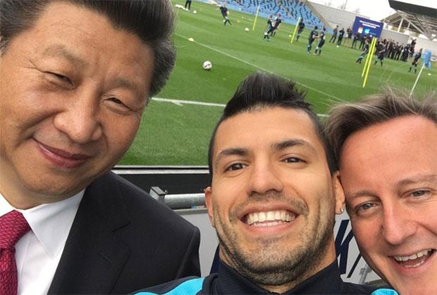 MANČESTER - Jedan od najboljih fudbalera Mančester sitija Serhio Aguero napravio je selfi sa kineskim predsednikom Si Đinpingom i britanskim premijerom Dejvidom Kameronom.