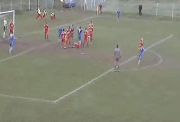 U finišu utakmice posle kornera i vazdušnog duela, jedan gostujući igrač ostao je da leži, što je iskoristio domaći fudbaler da ga šutne u glavu. Mladić je tom prilikom teže povređen. Ostao je bez svesti.