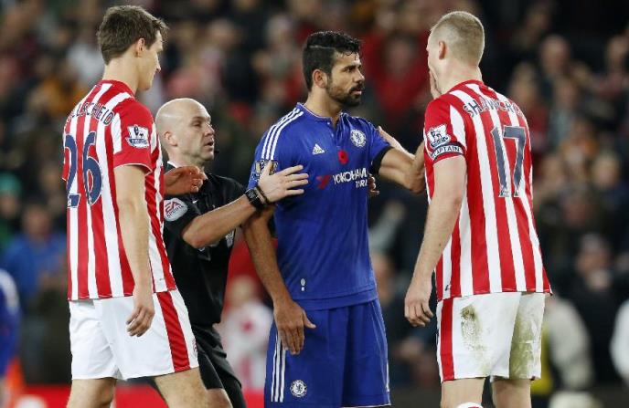 Napadač Čelsija Dijego Košta nije mogao da se pomiri sa činjenicom da je potpuno nemoćan u napadu protiv sjajne odbrane Stouka, pa je iz očaja na najgori mogući način provocirao kapitena protivničkog tima - Rajana Šoukrosa