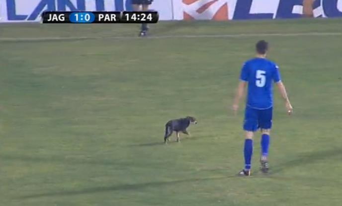 Meč u Jagodini na kratko je bio prekinut u 15. minutu, jer je pas uleteo na teren.
