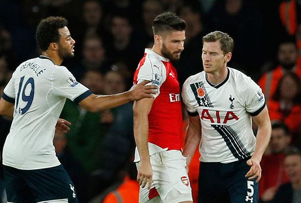 Fudbaler Totenhema Jan Vertogen vodio je žestoke duele sa igračem Arsenala Olivijeom Žirom tokom meča dva kluba u 12. kolu Premijer lige