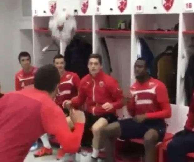 Fudbaleri Crvene zvezde dobro su se zabavili u svlačionici posle treninga u utorak.