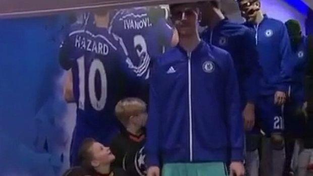Mališan je bio impresioniran visinom golmana Čelsija, a njegov izraz lica je sve objasnio.