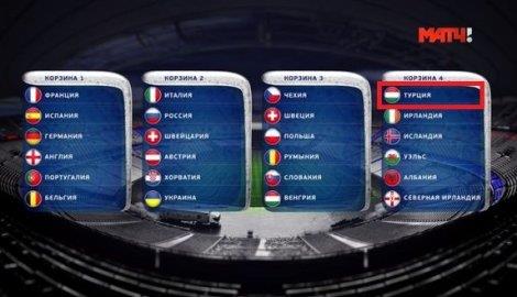 Voljom žreba koji je održan u Parizu Rusija će na Evro 2016 u Francuskoj igrati u grupi B, zajedno sa Engleskom, Slovačkom i Velsom. Turska se nalazi u grupi D, koja je proglašena za grupu smrti, zajedno sa Španijom, Hrvatskom i Češkom.