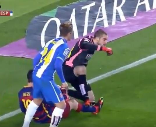 Golman Espanjola Pau Lopes namerno je nagazio najboljeg igrača Barselone Lionela Mesija u prvom meču osmine finala Kupa kralja.