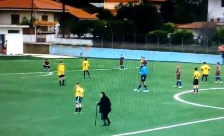 Nije poznato o kojim amaterskim ekipama je reč, ali je njihovu utakmicu prekinula starija gospođa sa štapom koja je u jednom trenutku ušetala u teren.
