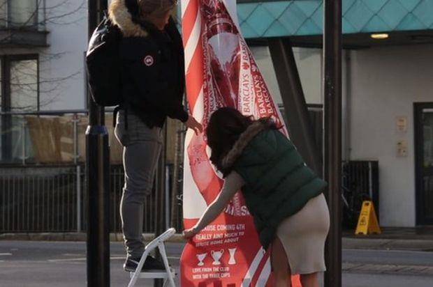 "Šta je ovo? Ne možeš ovo tu da postaviš", rekao je jedan od navijača Arsenala, koji je pljunuo na plakat.