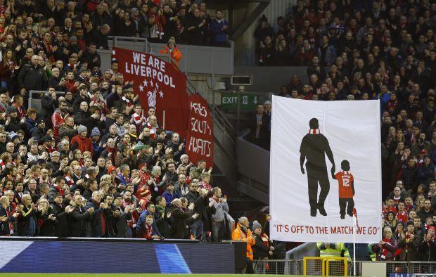 U 12. minutu meča Liverpul - Stouk na tribinama je podignuta zastava sa rečima iz himne navijača Redsa, a svi navijači na stadionu su aplaudirali, kao i treneri dva kluba.
