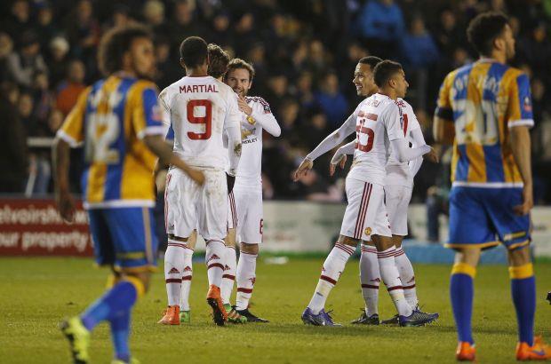 Junajted je večeras u gostima pobedio ekipu Šruzberija 3:0. Golove za "crvene đavole" postigli su Smoling u 37, Mata u 45. i Lindgard u 61. minutu.