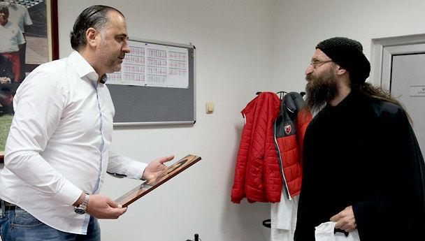 U poseti fudbalerima Crvene zvezde u četvrtak je bio protosinđel Gerasim Dragojević iz manastira Đurđevi Stupovi kraj Novog Pazara.