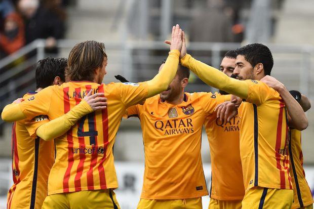 Fudbaleri Barselone pobedili su danas na gostujućem terenu Eibar sa 4:0, u utakmici 28. kola španskog prvenstva i nastavili niz od 36 pobeda u svim takmičenjima.