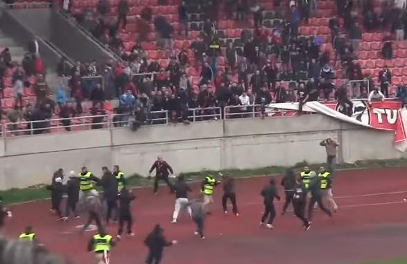 Odmah po završetku prvog poluvremena na stadionu "Tušanj" došlo je do obračuna grupa "Fukare" i "Horde zla".