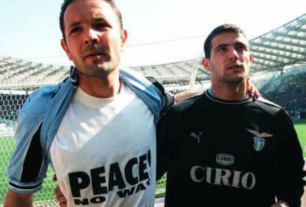Siniša Mihajlović i Dejan Stanković kao članovi Lacija iz Rima uoči utakmice protiv Milana. "Mir, a ne rat".