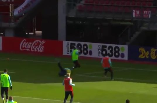 Holandski reprezentativac Klas Jan Huntelar slomio je na treningu nos saigraču i golmanu nacionalnog tima Jasperu Kilesenu.