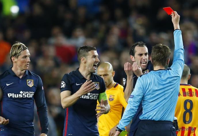 U prvom meču četvrtfinala Lige šampiona između Barselone i Atletiko Madrida, Fernando Tores je u razmaku od 29. do 35. minuta, pri vođstvu Atletika 1:0, dobio dva žuta kartona i gosti su do kraja meča imali igrača manje na Nou Kampu.